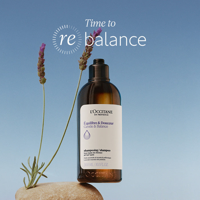 Enriched with lavender essential oil and skincare active prebiotics, the Gentle & Balance hair care range soothes and rebalances the scalp’s ecosystem while giving hair softness and shine.